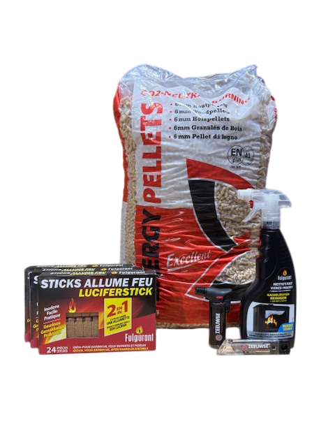 • Een zak hoogwaardige houtpellets – voor een stabiel, warm vuur.